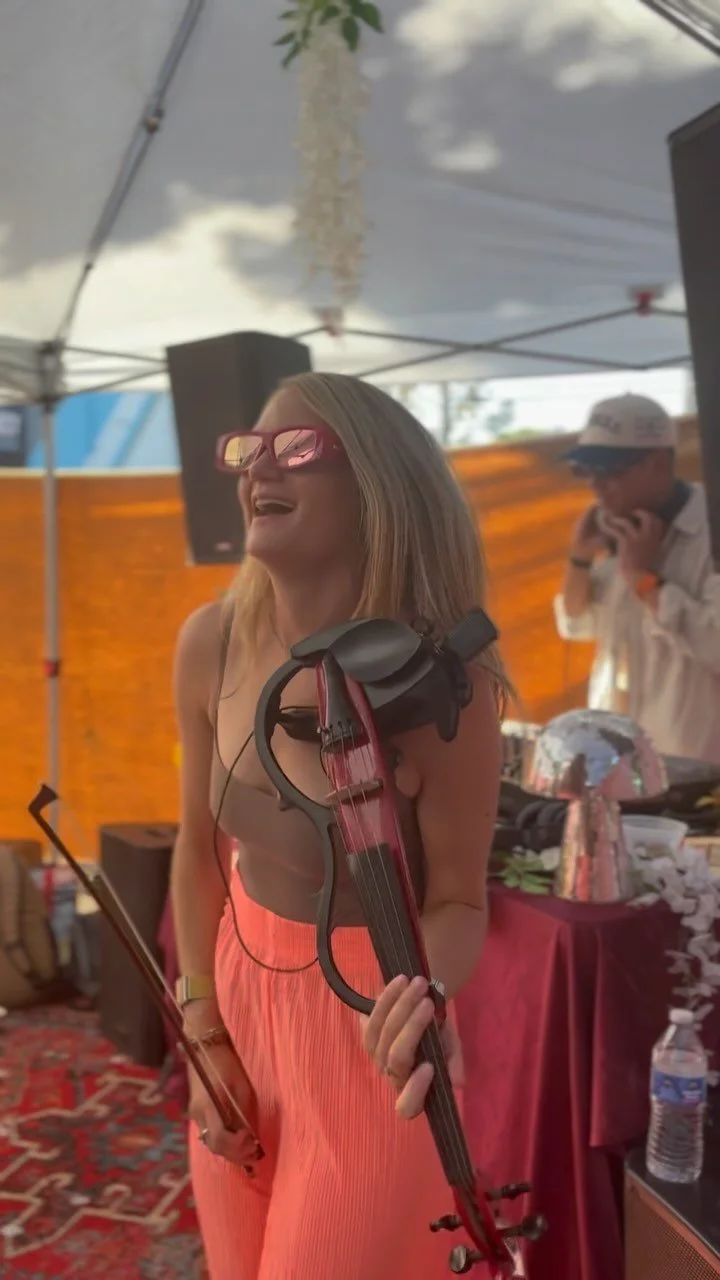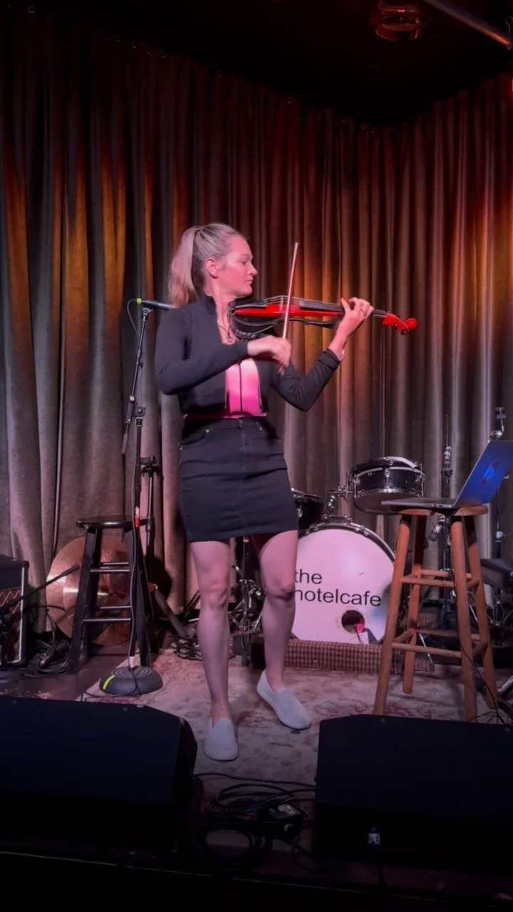 She plays electric violin across the Los Angeles area with a focus on deep, meaningful, and fun music.